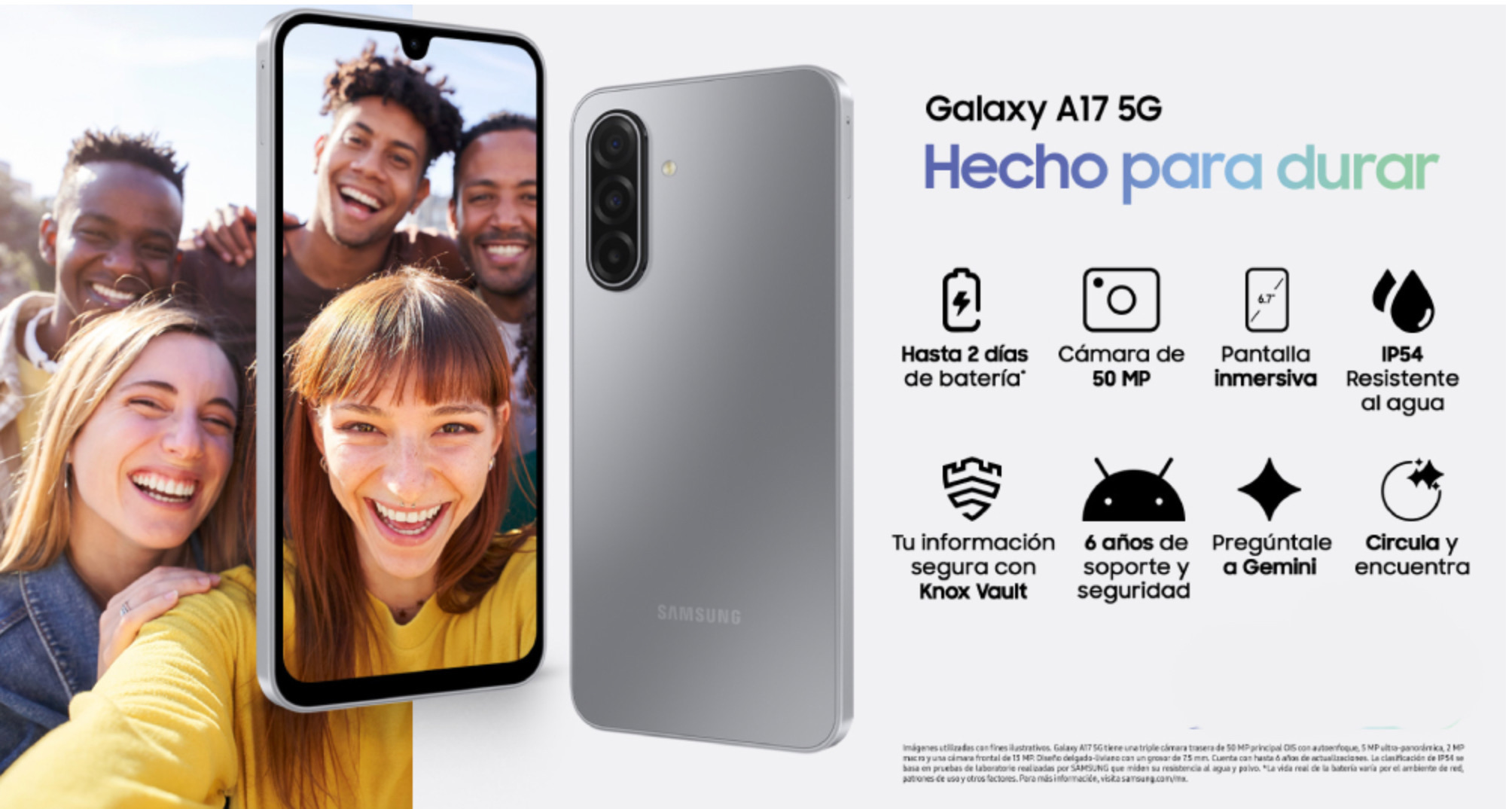 Además de Circle to Search, el Galaxy A17 llega con cámara de 50 MP con OIS, pantalla fluida de hasta 90 Hz y batería de larga duración.