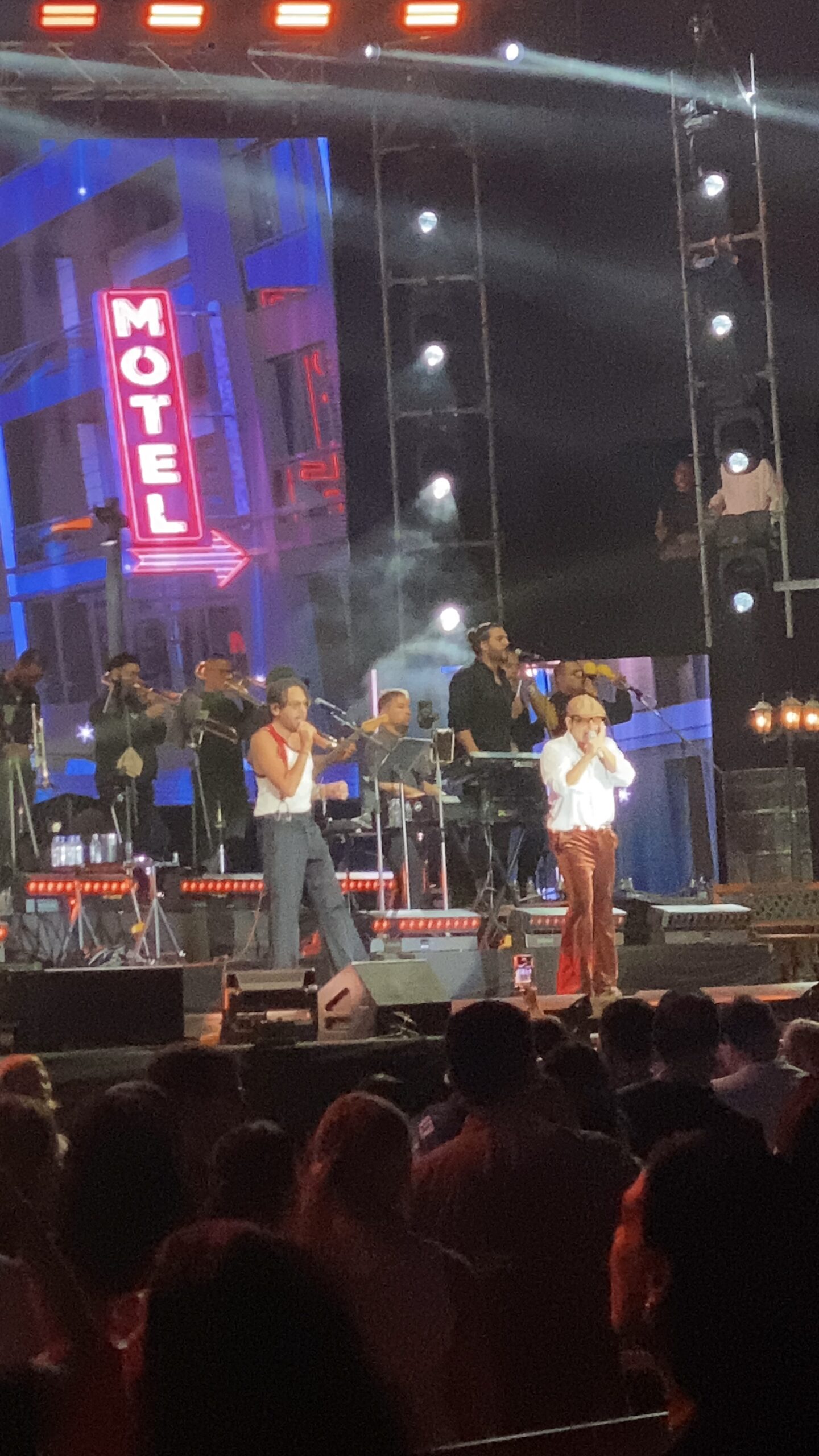 Otros temas más recientes como Lunares, Amor de Motel, Te llevaré, Eres tú y Cenizas, fueron entonados y bailados con euforia por el público Por otra parte, el cantante @maelo_ruiz los acompañó en una pantalla para cantar «No te vayas», uno de los temas que el dúo canta en colaboración con el salero puertorriqueño.