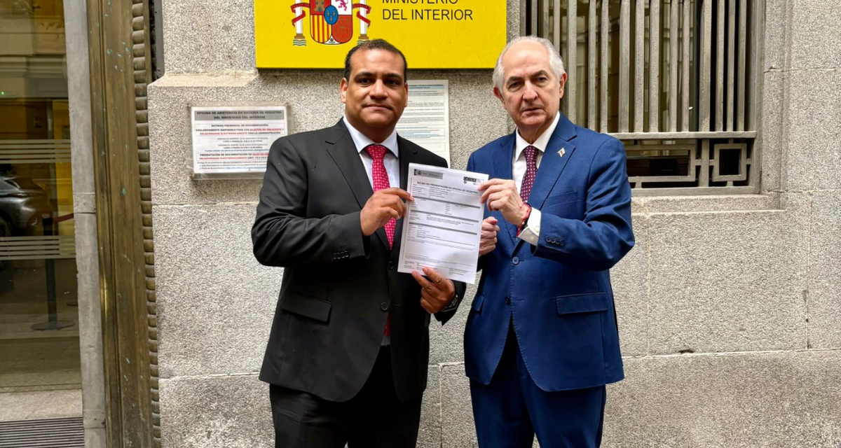 El exacalde metropolitano de Caracas Antonio Ledezma y el abogado del Comando Con Venezuela Tomás Arias registraron este jueves la denuncia, que firman ambos, en el Ministerio del Interior español, así como una petición de reunión con la secretaría de Estado de Seguridad, Aina Calvo, para explicarle la situación y explicitar esa petición de protección.