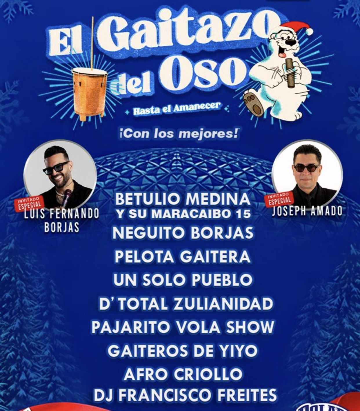 Las empresas dieron a conocer a través de las redes sociales, que serán Joseph Amado y Luis Fernando Borjas junto a: Betulio Medina y su Maracaibo 15, Neguito Borjas, Pelota Gaitera, Un Solo Pueblo, D’ Total Zulianidad, Pajarito Vola Show, Gaiteros de Yiyo, Afro Criollo y Dj Francisco Freites, quienes pondrán a cantar y bailar a quienes asistan, el próximo viernes 5 de diciembre, al Poliedro de Caracas.